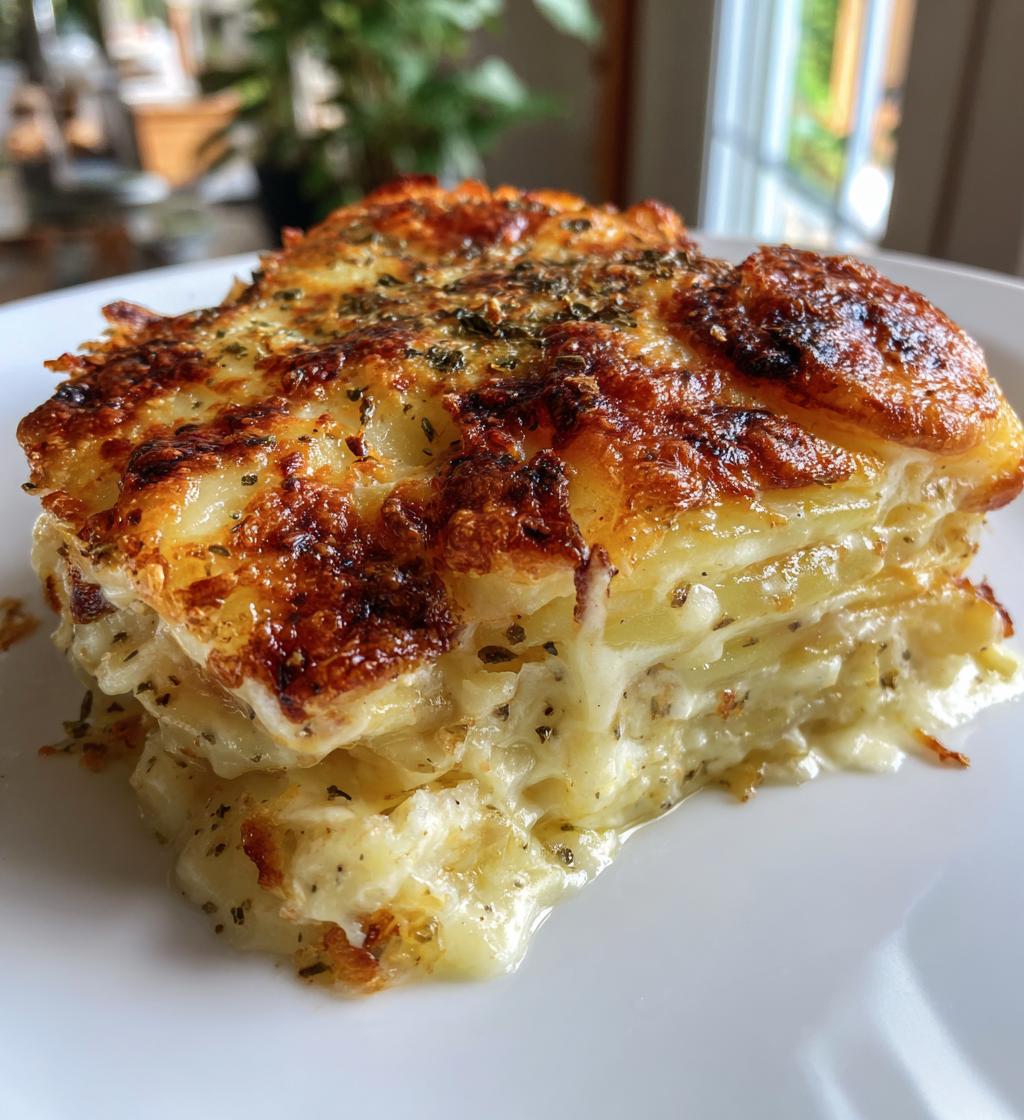 A classic comfort dish made with thinly sliced potatoes, creamy sauce, and cheese.